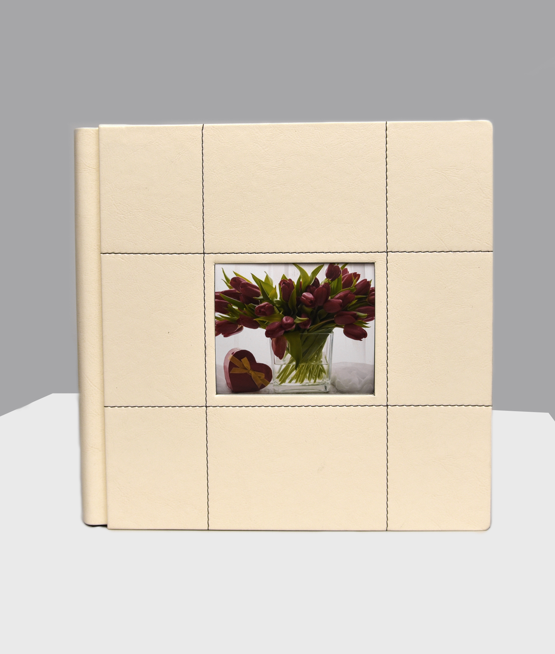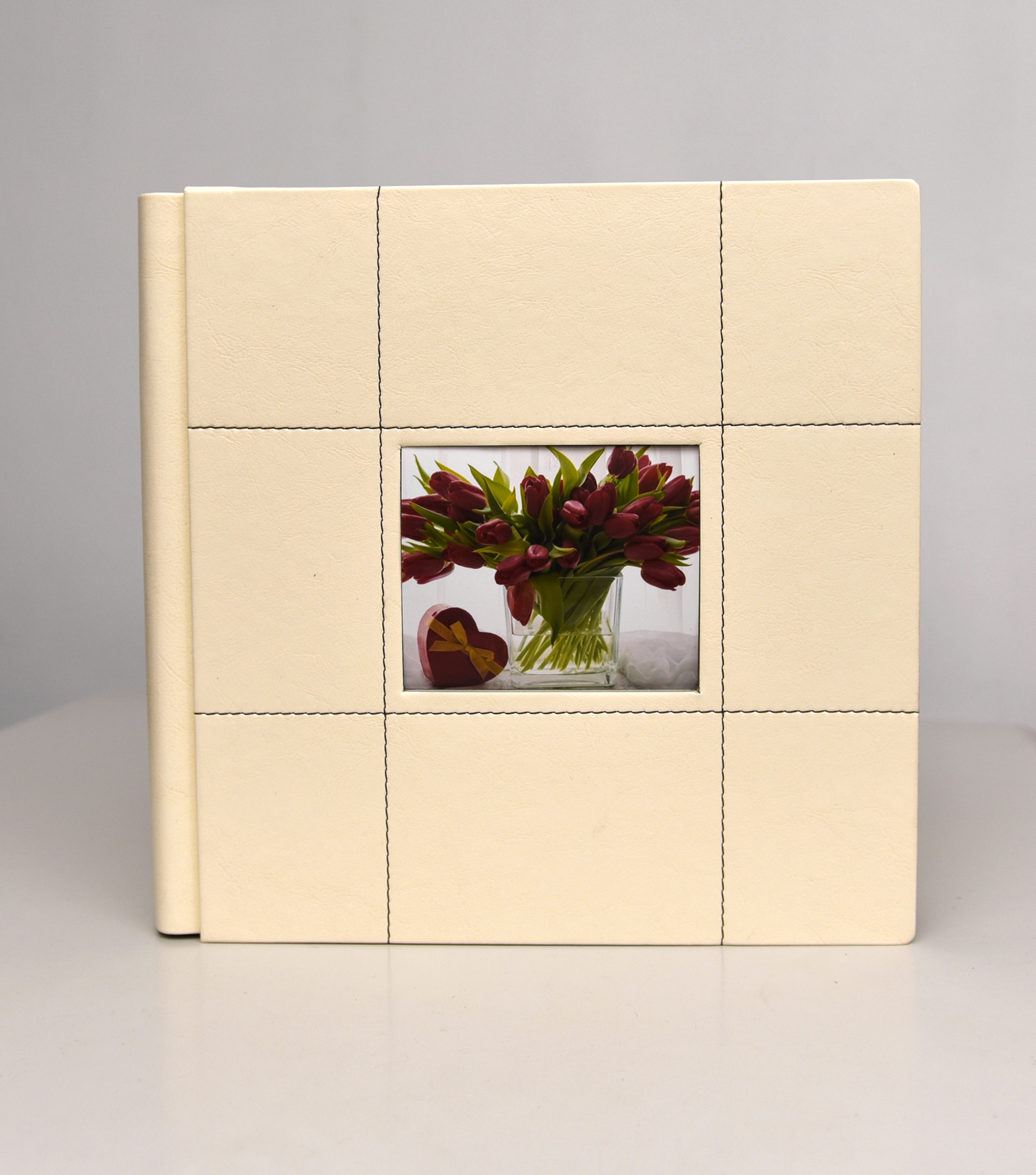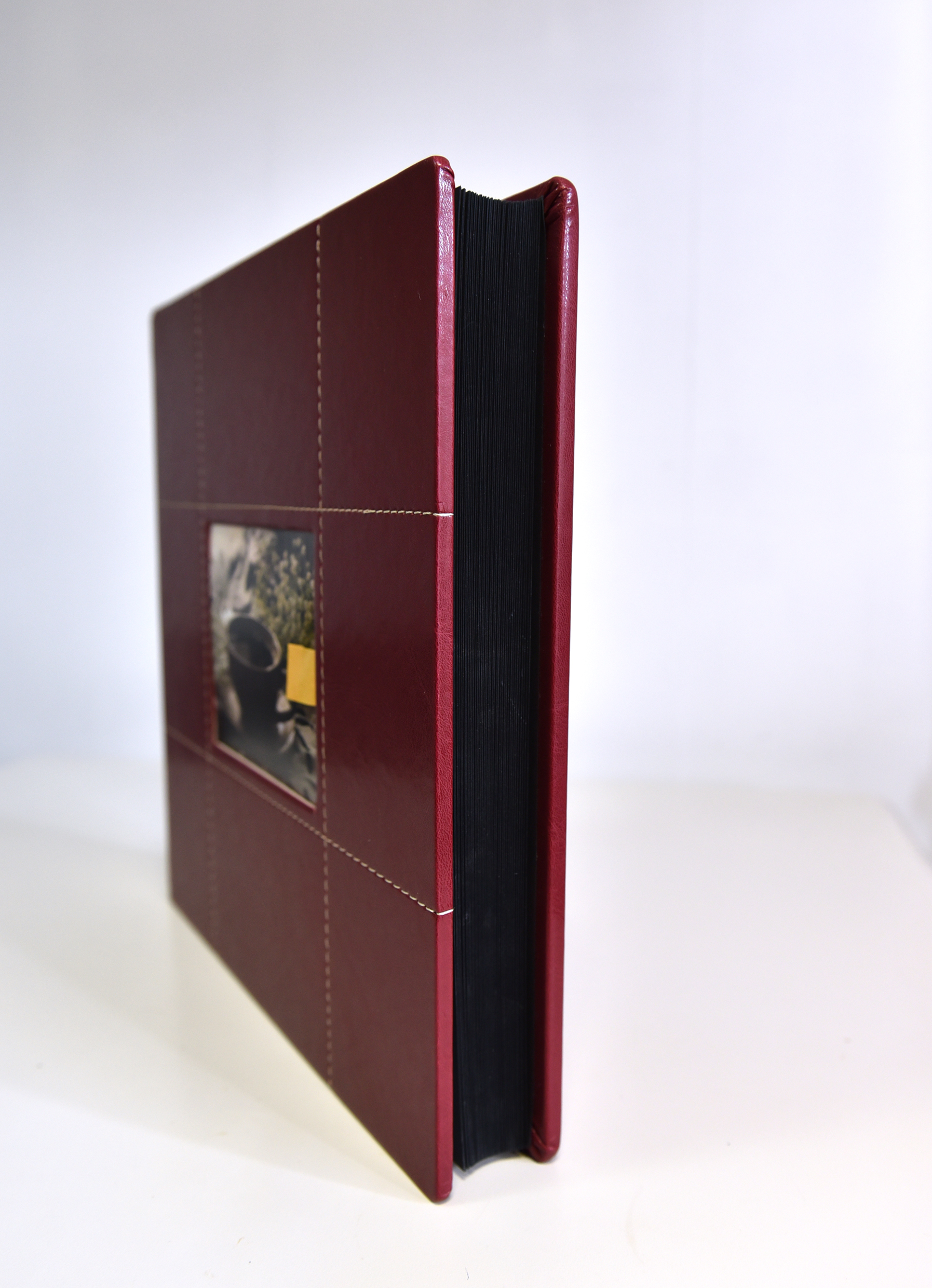 Dodatkowe elemety które możesz wybrać do Alubumów to okładka z okienkiem w którym możemy umieścić zdjęcie, przeszycie na okładkach nicią kontrastową.